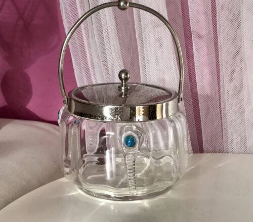 Antik Art Déco Bonboniere Glasdose Keksdose Konfektdose Dose Glasauflagen
