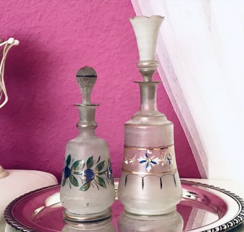 antik Karaffe mit Stopfen Biedermeier Malerei Email Abriss