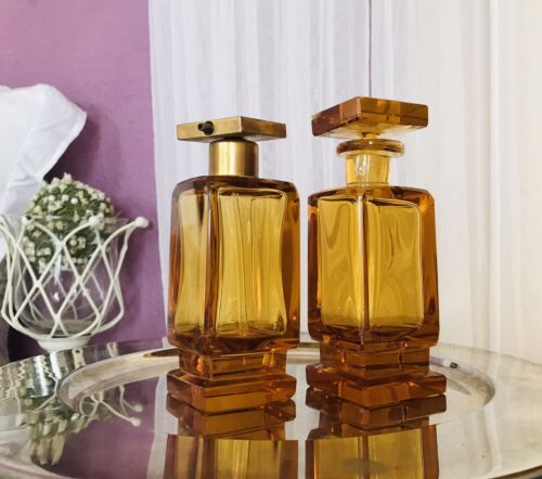 Antik Art Déco EDEL! 2 Parfüm Flakons Amber wertig Bernstein Farbe gelb Moser ?
