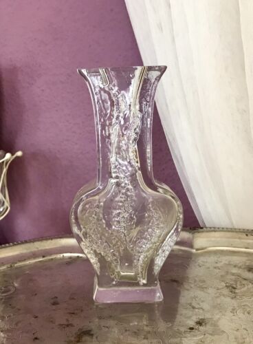 Vintage Glasvase Vase farblos Kristallglas Designer Murano ? kantig