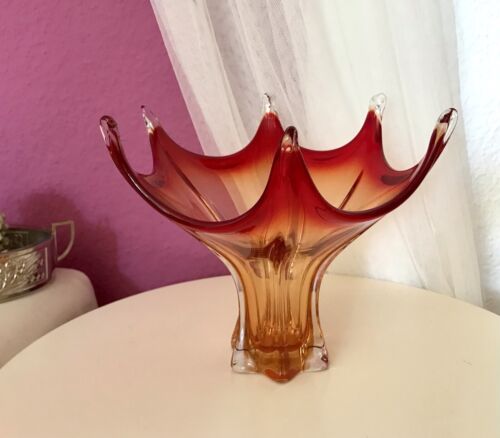 Vintage Groß Murano 50er 60er Jahre hohe Schale Glasvase Glas rot gelb einmalig