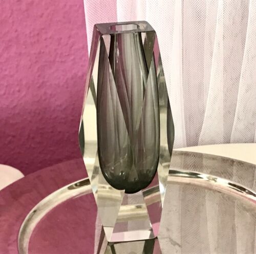 Vintage Glasvase Vase Rauchglas Kristallglas Designer Murano EDEL Flächenschliff