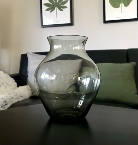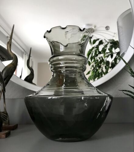 Vintage Glasvase Glas Rauchglas Vase Mid century Design GRAU 60er Jahre