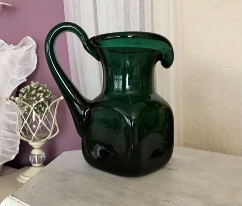 Vintage Edel Krug Glaskrug Karaffe Kanne Abriss Glas Grün Glaskunst 3250g!!