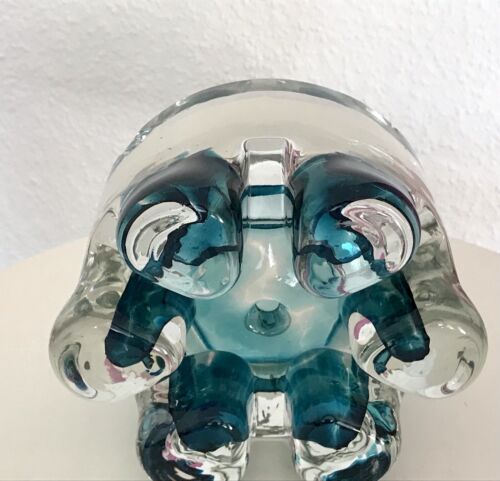 Vintage GROß Türkis blau Aschenbecher Ascher Kristallglas Designer „geschichtet“