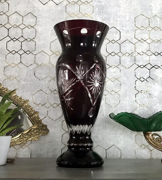 Antik Edel Art Déco Vase Glasvase Kristallglas Pokalvase rot groß Schliff Böhmen