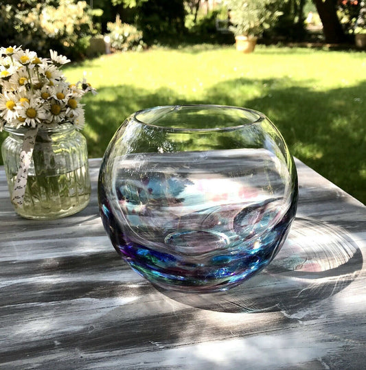 Vintage Glasvase Vase Kugelvase Blumenvase türkis magenta Farbinsel