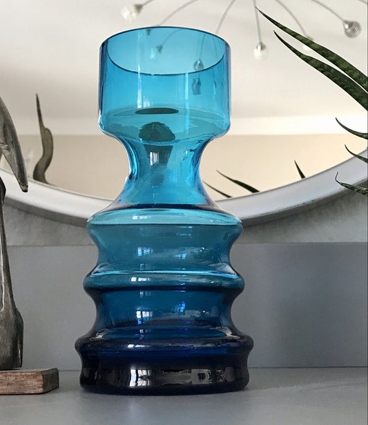 Vintage MCM 60er 70er Jahre blau Glas Kerzenständer Vase Blumenvase Glasvase