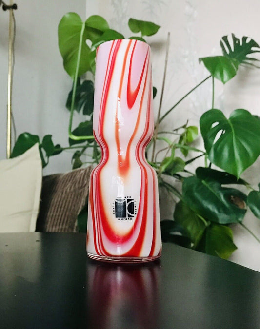 Carlo Moretti Vintage Vase Murano Glasvase rot weiß