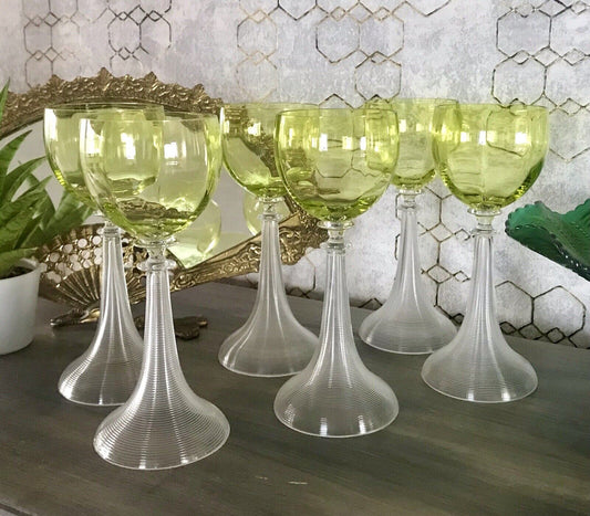 Antik Glas 6x Römer Weingläser Jugendstil Theresienthal ? optisch gerippt grün