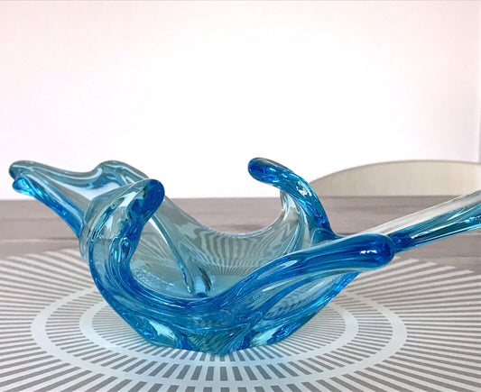 Murano 60er 70er Jahre Schale Glas Schön zipfelig türkis blau