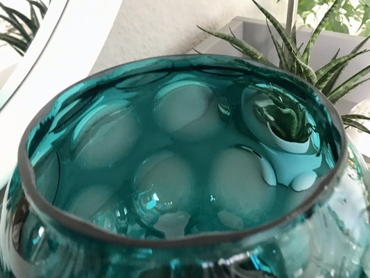 Vintage 60er Design Glasvase Glas Petrol Grün Vase Bubble Sputnik Ära Bowle