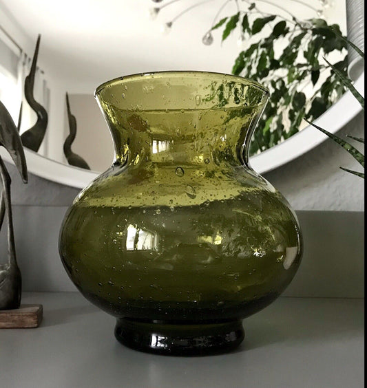 Vintage 60er Design Glasvase Glas oliv Grün Vase Mid Century Bubble
