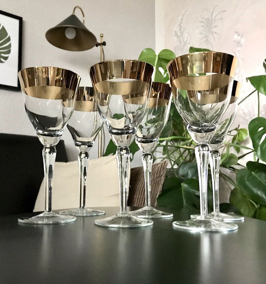 Vintage EDEL 10 Weingläser Gläser breiter Goldrand Mid Century hochstielig