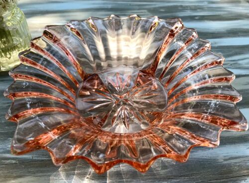 Jardiniere Brockwitz Prismen Rosalin Rosa Art Déco Schale Pressglas Glasschale