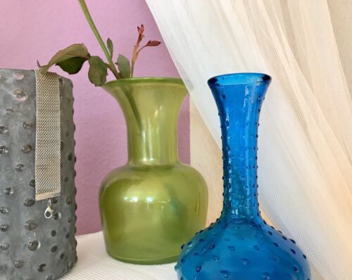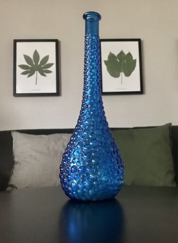 Mid Century Jahre Vase Blumenvase Glasvase Glas Blau Noppen Space Age 60er