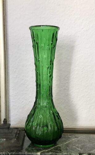 Mid Century Glas Vase Blumenvase Glasvase Pressglas? Glas grün Warzen