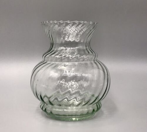 Mid Century alt Vase Glasvase 60er gerippt zart grün 5passig bauchig