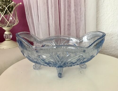 Jardiniere Blau Art Déco Schale Pressglas Antik Glasschale Obstschale 4fuß