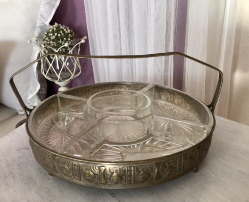 Jugendstil Schale Tafelaufsatz Kabarett-Schale Anbietschale Pressglas versilbert
