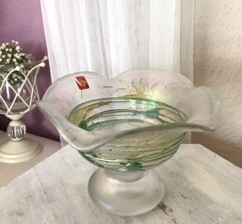 Jugendstil von Poschinger Glaskunst Schale Glas irisierend Fußschale Unikat