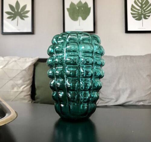 Vintage 60er 70er Design Glasvase Glas GRÜN Vase Bubble Pop Art Hirschberg