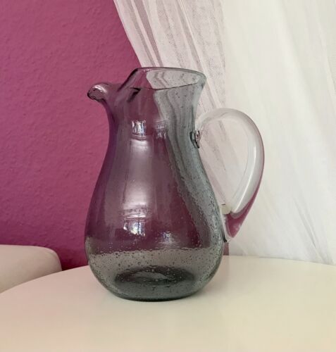 Vintage 50er Design Krug Glaskrug Kanne Karaffe Rauchglas grau Luftblasen