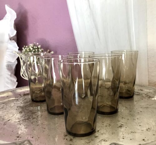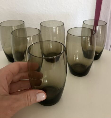 Vintage 60er 6x Wasser Gläser Becher Trinkgläser Rauchglas graubraun