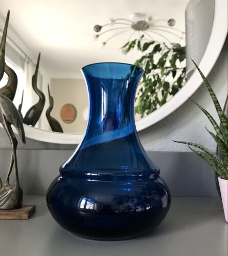 Vintage 60er Design Glasvase Glas Blau Vase Mid Century