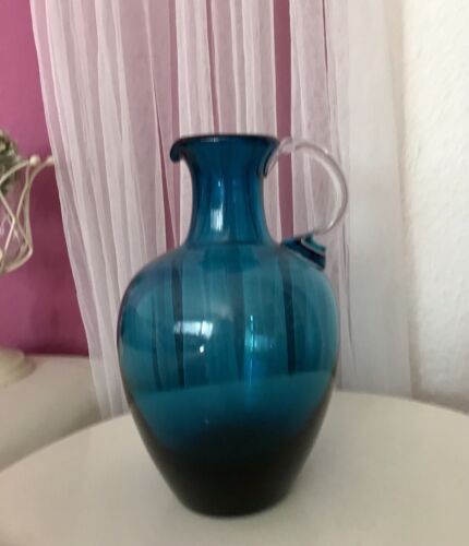 Vintage 60er 70er Jahre Glasvase Vase türkis blau Henkelvase So schön!