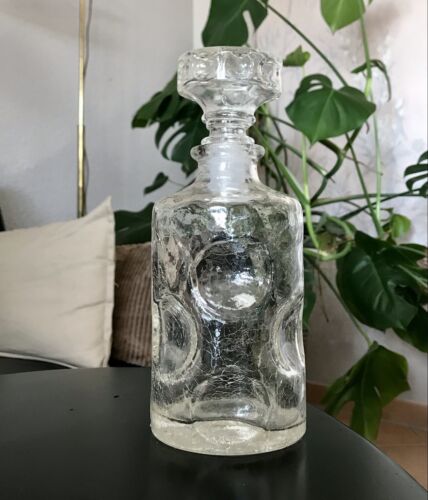 Vintage 60er 70er Karaffe Rumflasche Whiskyflasche Glasflasche Craquelée Glas