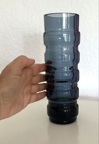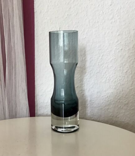 Vintage 60er Riihimäki Lasi Designer Glasvase Vase Glas graublau Finnland Rauch