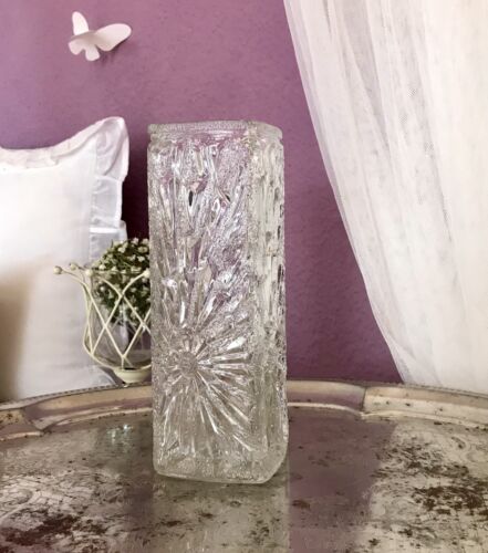 Vintage 70er Glas Vase Blockvase Glasvase Blumenvase farblos