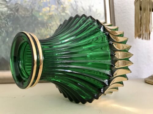 Vintage 70er grün gold Pressglas Vase Glasvase Glas Walther Kultig