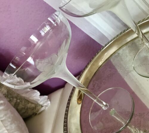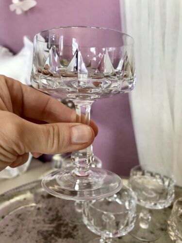 Vintage 6x EDEL Champagnerschalen Sektgläser Kristallglas Lotus mattierte Parts
