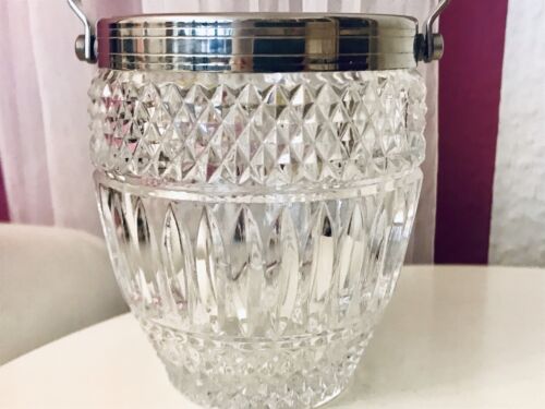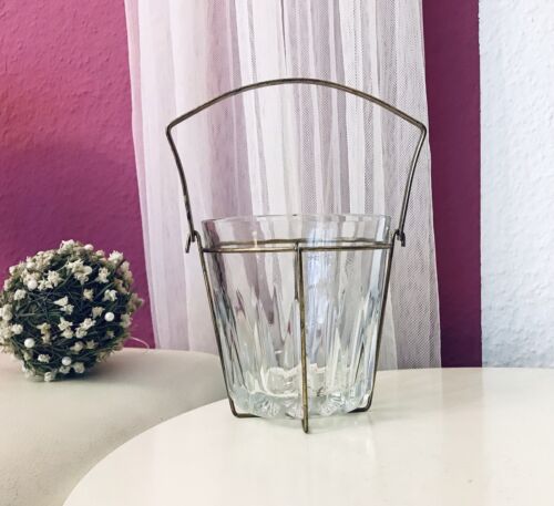 Vintage 60er Eiswürfelbehälter Eiseimer Eiskübel Glas Kristallglas Metallmontur