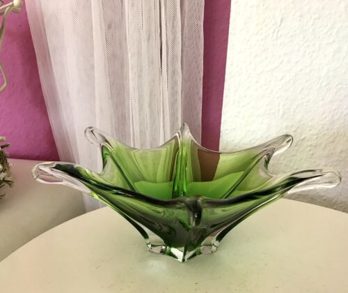 Vintage 60er Somerso Murano Schale Glas grün Überfangglas Erscheinung