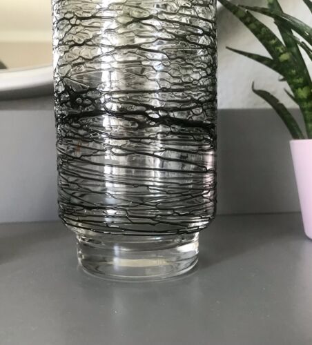 Vintage 60er Design Gral Glasvase Glas Vase schwarze Fadenauflage Mid Century