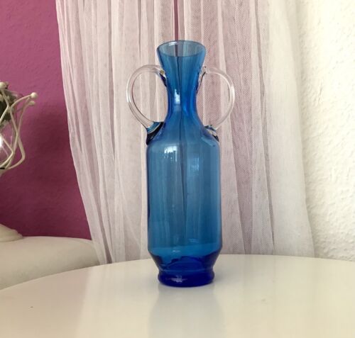 Vintage 60er Mid Century Vintage Vase Glasvase Türkis Blau Henkelvase