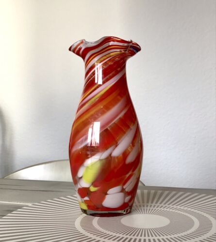 Vintage 60er Jahre Glasvase Vase rot Farbinsel Streifen gekniffener Rand