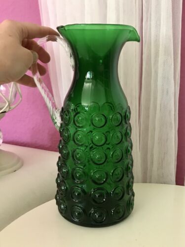 Vintage 70er Kanne Krug Glaskrug Karaffe Glas mundgeblasen grün Nuppen-Optik
