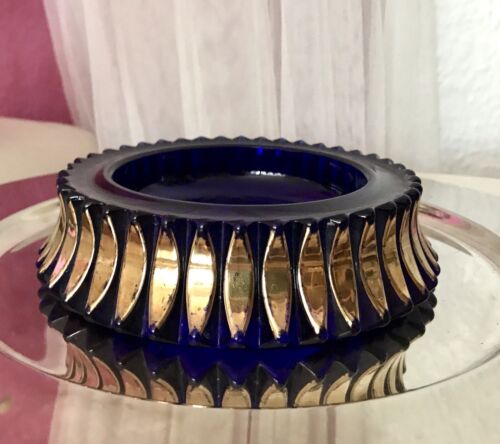 Vintage 70er kobaltblau Gold Pressglas kleinere Schale Glas Walther Kultig