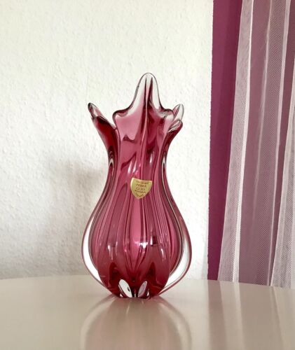 Vintage 60er Glasvase Vase böhmisch Überfangglas pink farblos