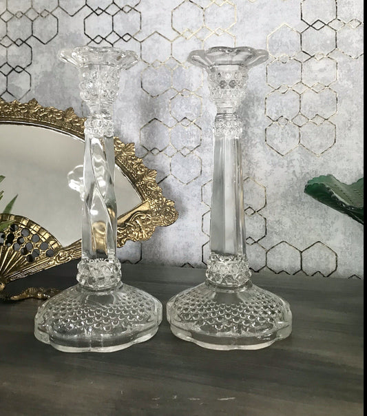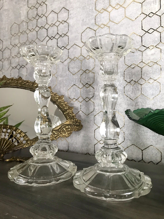 Antik Art Déco 2x Kerzenleuchter Leuchter Kerzenständer Pressglas Glas