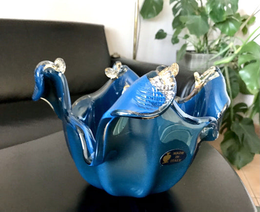Vintage Murano Schale Vase Glas Petrol Blau metallic irisierend Edel Aufkleber