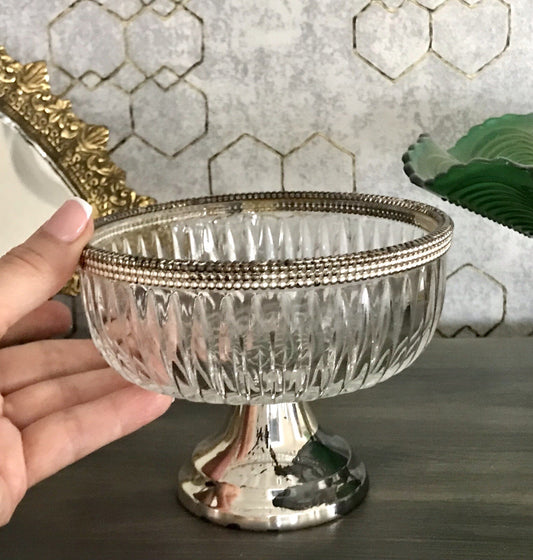 Vintage Glasschale Fußschale Schale Glas versilberte Montur Kristallglas?