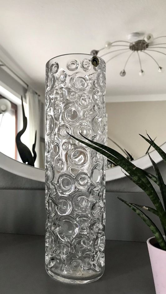 Vintage 60er 70er Design hohe Glasvase Glas Vase Bubble Op Art Hirschberg