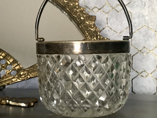 Antik Bonboniere Glasdose Dose Bleikristall edel Schliff Baccarat? versilbert