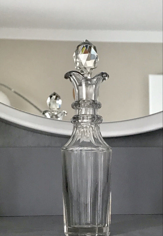 Antik Biedermeier kleine Karaffe Weinkaraffe Dekanter Glas Flächenschliff kantig