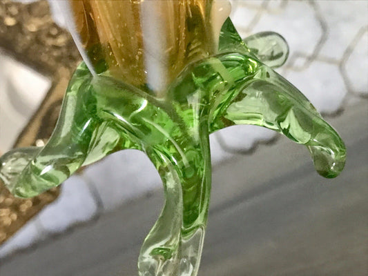 Antik Vase Glasvase Jugendstil Aufschmelzungen Krallik? Lötz? teils Uranglas